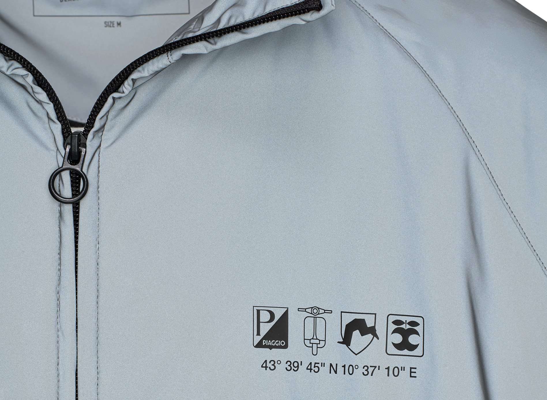 Weiche und leichte Windjacke mit wasserabweisender Behandlung. Die Jacke ist mit dem Vespa-Logo und der neuen Vespa-DEC-Grafik individuell gestaltet, die auf die Geschichte der Marke verweist. Ein atmungsaktives Netzfutter in der gleichen Farbe sorgt für zusätzlichen Komfort. Aus dem unsichtbaren Reißverschluss hinten am Kragen kann die Kapuze herausgezogen werden. Das neue aufgedruckte Innenetikett ist nur eines der Beispiele für die sorgfältige Detailpflege, die diese Jacke zu einem außerordentlichen Kleidungsstück macht. Die Farbe der Klinge wurde mit einem reflektierendem Gewebe hergestellt.