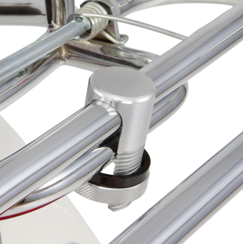 Praktische Halteklammer für alle Gepäckträger. Hält den Klappbügel sicher und verhindert ein ungewolltes einklappen. Wird mittels Rändelschraube gesichert. Passend für alle Gepäckträger mit einem Rohrdurchmesser bis Ø=18,55mm.