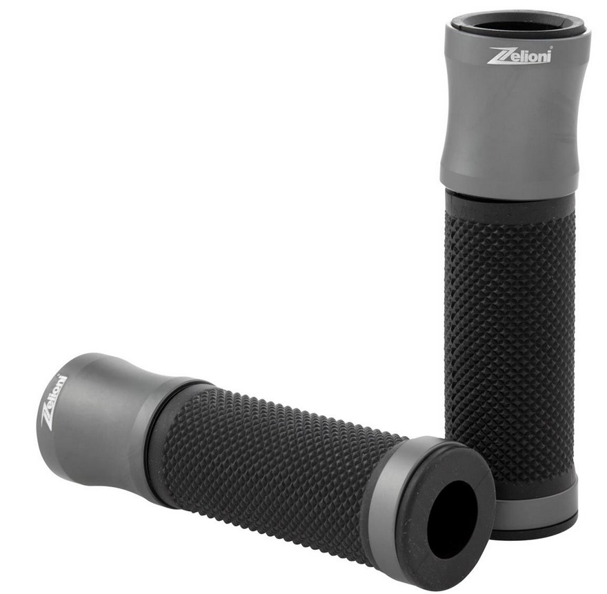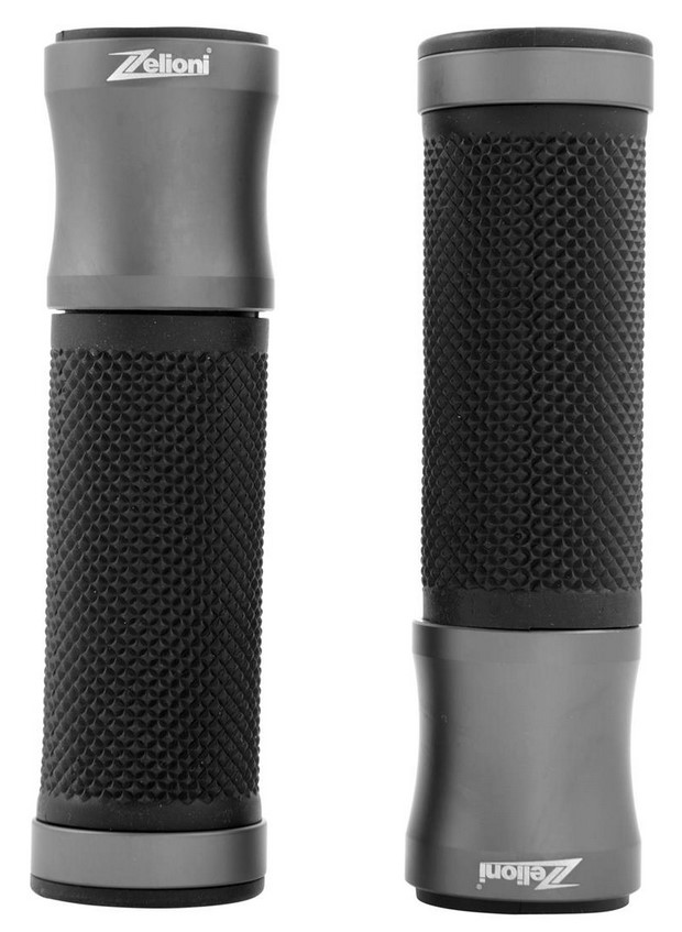 Ergonomischer Griff mit gummierter Handfläche. Alu Caps mit lasergraviertem ZELIONI Logo. Enden offen für Montage von Lenkerendengewichten/Spiegeln.