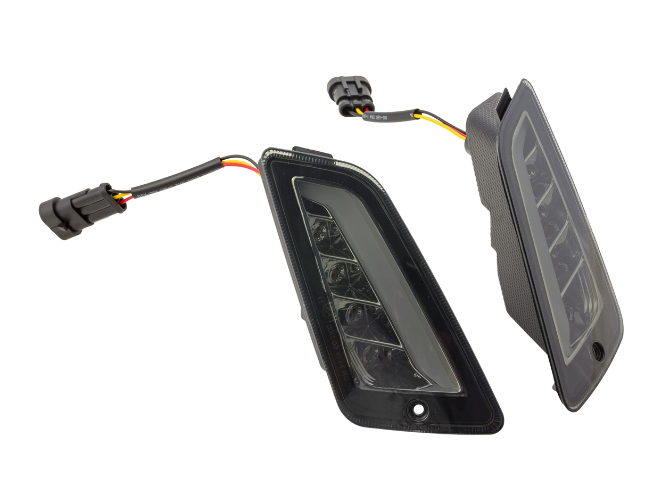 SIP LED Blinkerkits mit integrierten LED Positionsleuchten und E-Zulassung, mit getönten oder klaren Blinkergläsern. Durch die LED Leuchten wird man im Straßenverkehr auch tagsüber deutlich besser erkannt. Positionsleuchten strahlen vorne in weißem Licht, hinten in rotem Licht, die Blinkfunktion bleibt orange. Wird am Fahrzeug der Blinkvorgang ausgeführt so leuchten auf der jeweiligen Seite abwechselnd die Blinker- oder Positionsleuchten auf. Hochwertige Qualität und optimale Passform. Die Blinker Kits können Plug&Play ohne weitere Modifikationen montiert werden. Durch die eingelöteten Widerstände wird hier kein speziellen LED Relais mehr benötigt.